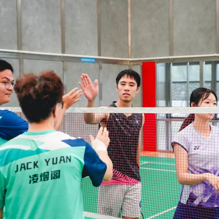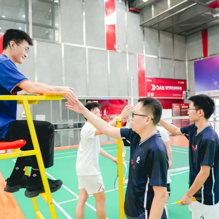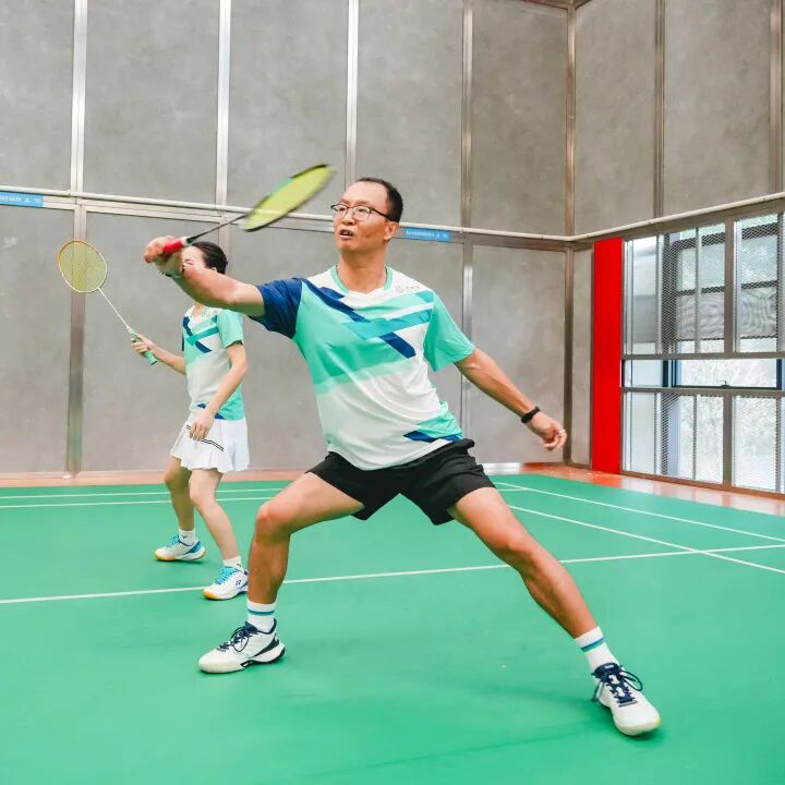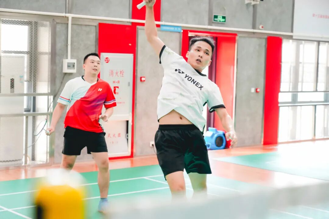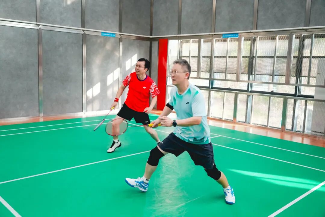 赛场另一侧,别具看点的100+男双表演赛激情开打,几位行业内资深羽毛球爱好者联袂出战,在场上默契配合、巧妙回球,奉献了多个精彩回合。