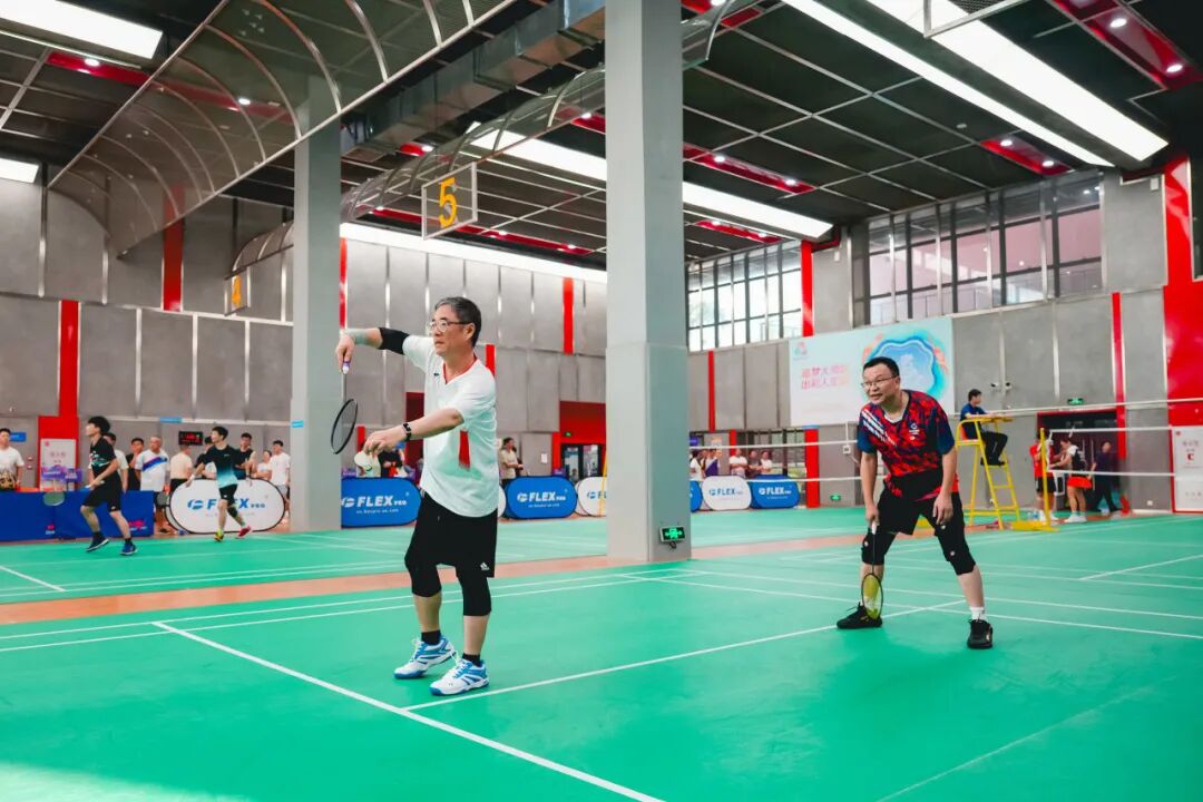 本届赛事除团体赛外,还特别增设了“100+男双表演赛”环节,邀请行业内资深羽毛球爱好者同场竞技,为赛事增添了更多看点。