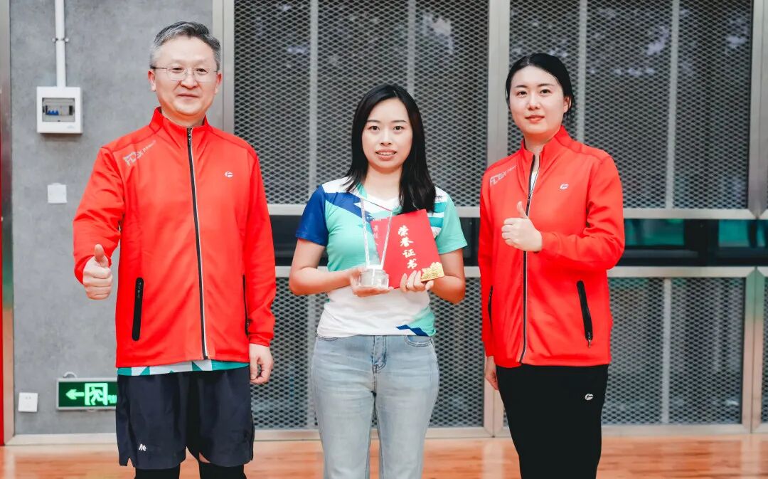 卓立文副总经理为团体赛优秀组织奖获奖队伍——省科学院及省科学院半导体所联队、江波龙羽毛球队、凌烟阁·芯羽先锋队、联动科技队颁发奖杯、证书与奖品。
