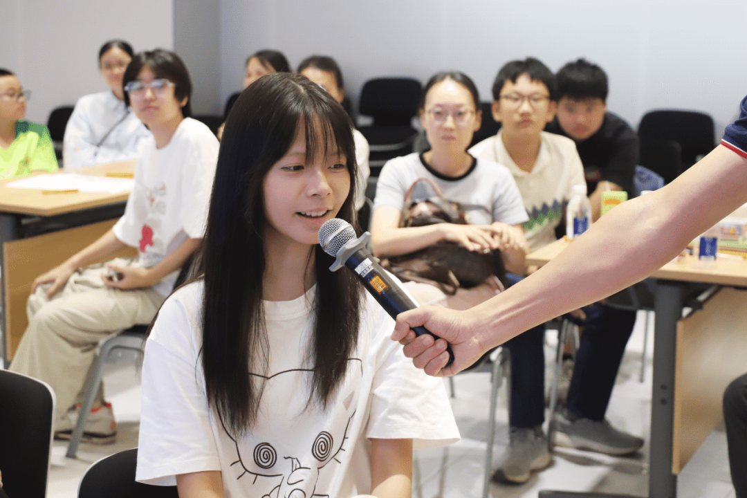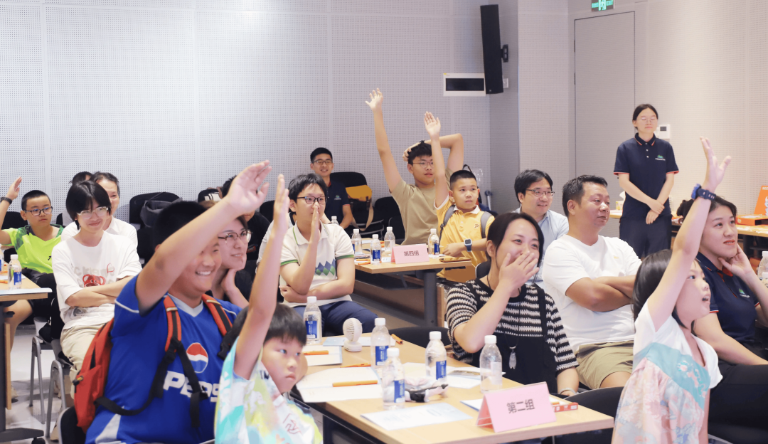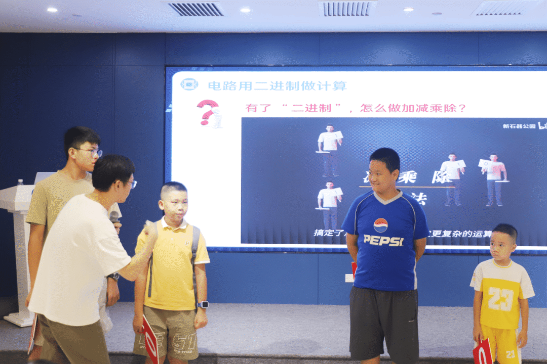 课中巧妙设计了二进制互动游戏与知识竞答环节,迅速点燃了现场的热情,同学们踊跃举手参与,此起彼伏的抢答声与欢笑声交织。