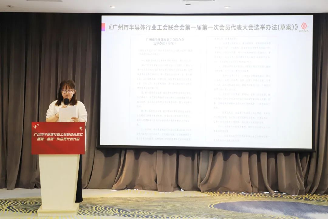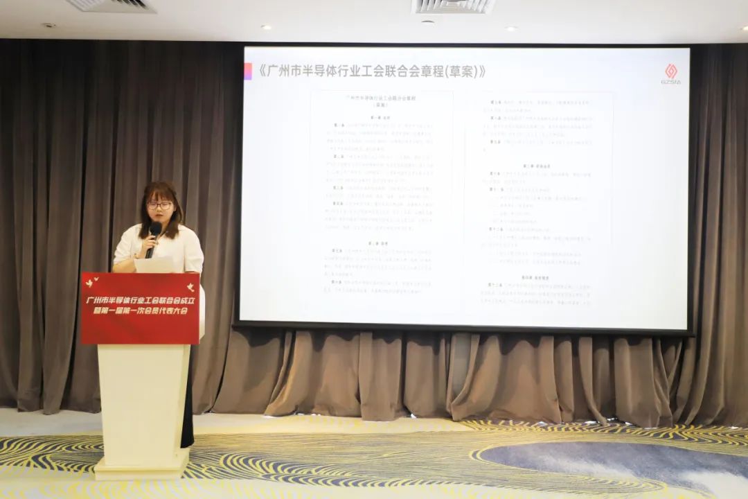 协会工会小组成员曾盈盈宣读《广州市半导体行业工会联合会章程(草案)》。大会审议通过章程草案。