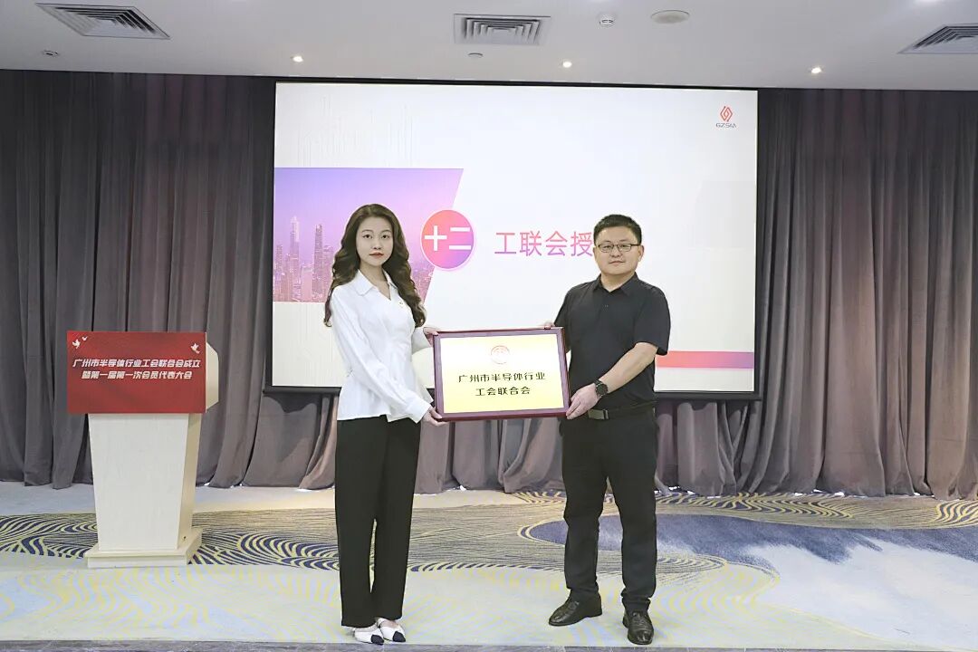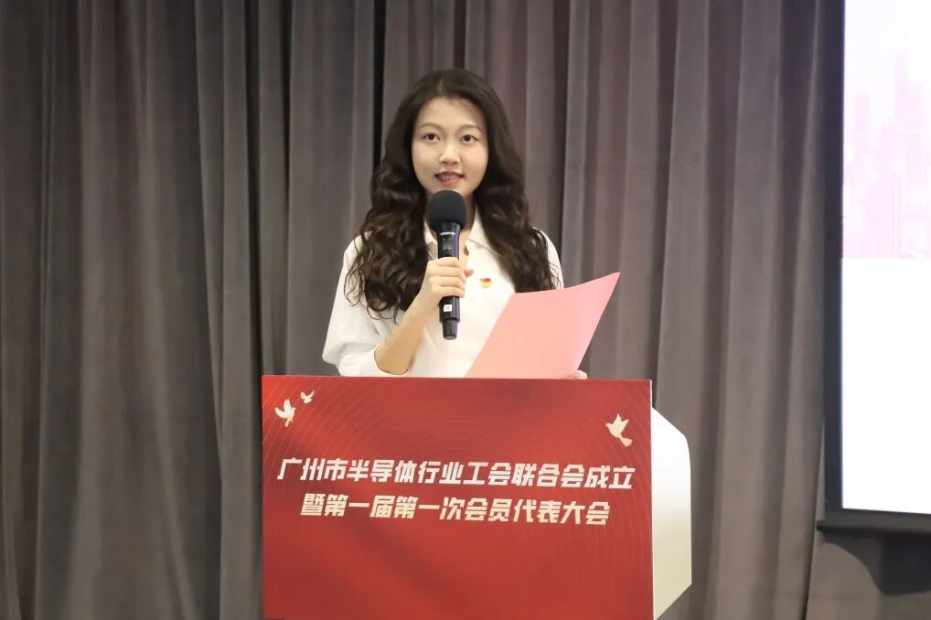2025年8月27日,在广州市总工会、广州市社会组织工会工作委员会和广州市民政局的指导下,广州市半导体行业工会联合会成立暨第一届第一次会员代表大会在广州芯大厦顺利召开,标志着广州市半导体行业工会联合会正式成立!市总工会副主席王向岭,市民政局社会组织登记发展处处长、一级调研员李国标,副处长丁太磊等领导,及来自粤芯半导体工会、安凯微电子工会、奥松电子工会、大湾区集成电路研究院工会、汉源微电子工会、金升阳科技工会、美维电子工会、华微电子工会、飞虹微电子工会、建智投资工会和广州市半导体协会工会小组的33位首批成员代表等近40人参会。会议由协会秘书长潘雪花主持。