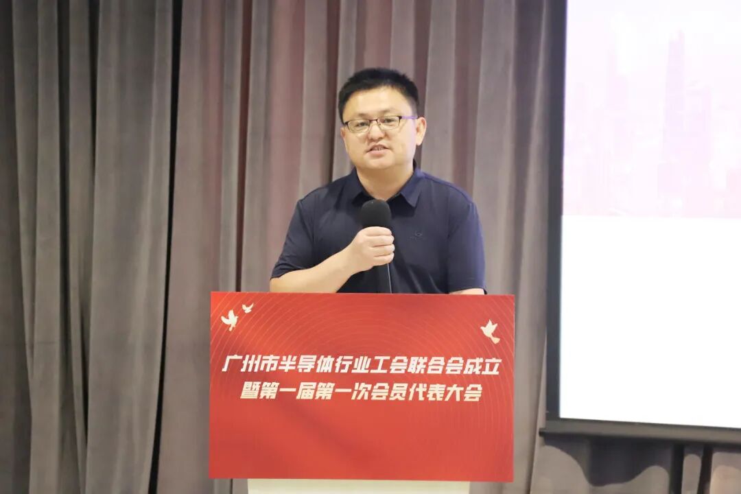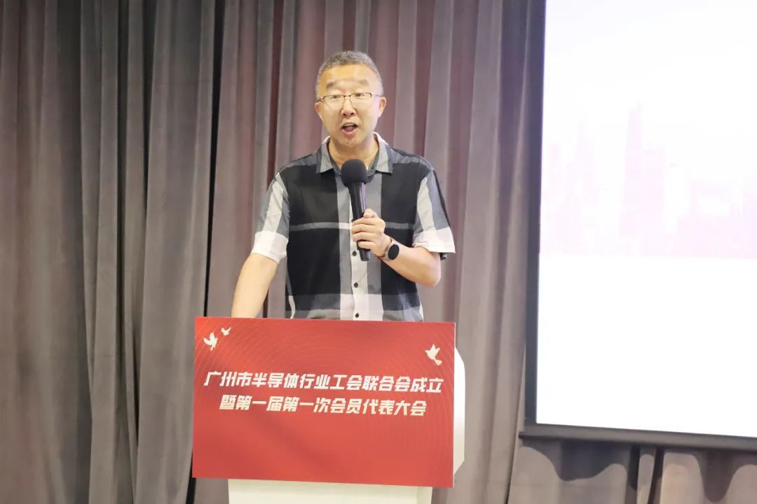 王向岭副主席代表市总工会对工联会的成立致以热烈祝贺! 他表示,半导体集成电路产业是广州市重点发展的战略性新兴产业,其工联会的成立是加强行业工会建设,凝聚行业力量的标志性举措,期望工联会能开好头、起好步,持续夯实组织基础,切实履行职责使命,团结引领广大产业职工,增强职工使命感和幸福感,为广州半导体产业与人才高质量发展注入新动能,凝聚新合力。