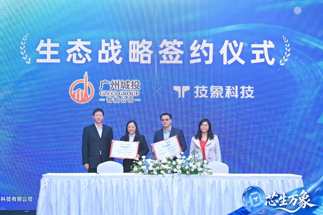 技象科技董事长徐新,广州市海珠区发展和改革局党组书记、局长李满红,中国电科太极总经理特别专务陈玥含,广州市海珠区科技工业商务和信息化局副局长吴小莹,中山大学电子与信息工程学院教授、博导夏明华教授,广东省物联网协会秘书长曾明,顺德职业技术大学副校长杨小东,广东省物联网协会秘书长曾明,广州市半导体协会秘书长潘雪花以及技象科技总工程师温文坤博士等嘉宾,共同为技象科技新一代国产自研芯片——象芯3号举行了首发仪式。